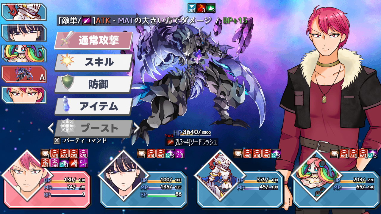 前提情報の整理も兼ねて、戦闘まわりのここが面白かったな~みたいな感想など。なお、基本的なシステムはターン制のコマンド選択型です。